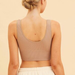 Beige Seamless Tank Top Scoop Neck Rib Crop