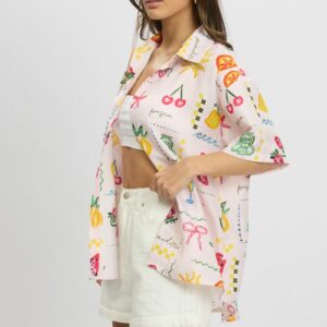Pink Abstract Relaxed Shirt Short Sleeve