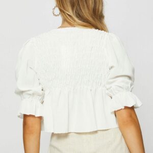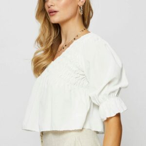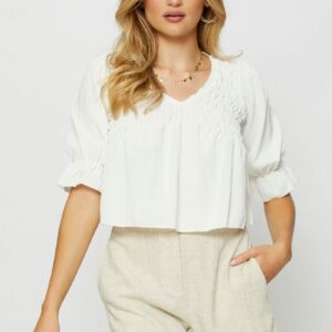 Features: Shirred Bodice, V Neckline, Half Sleeve, Skater Top
